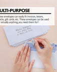 - MULTI-PURPOSE. These envelopes can easily fit invoices, letters, checks, gift cards, etc. These envelopes can be used for virtually anything you need them for!
