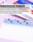 - WINDOWLESS DESIGN. Envelopes manufactured with a windowless front panel for easy printing, labeling or hand-addressing, perfect for quick, mass business mailings.