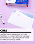 - SECURE. Just peel and seal to create a strong lasting seal without licking or moistening. Our self seal design is quick and easy and is guaranteed to stay sealed with no need for tape or glue sticks.