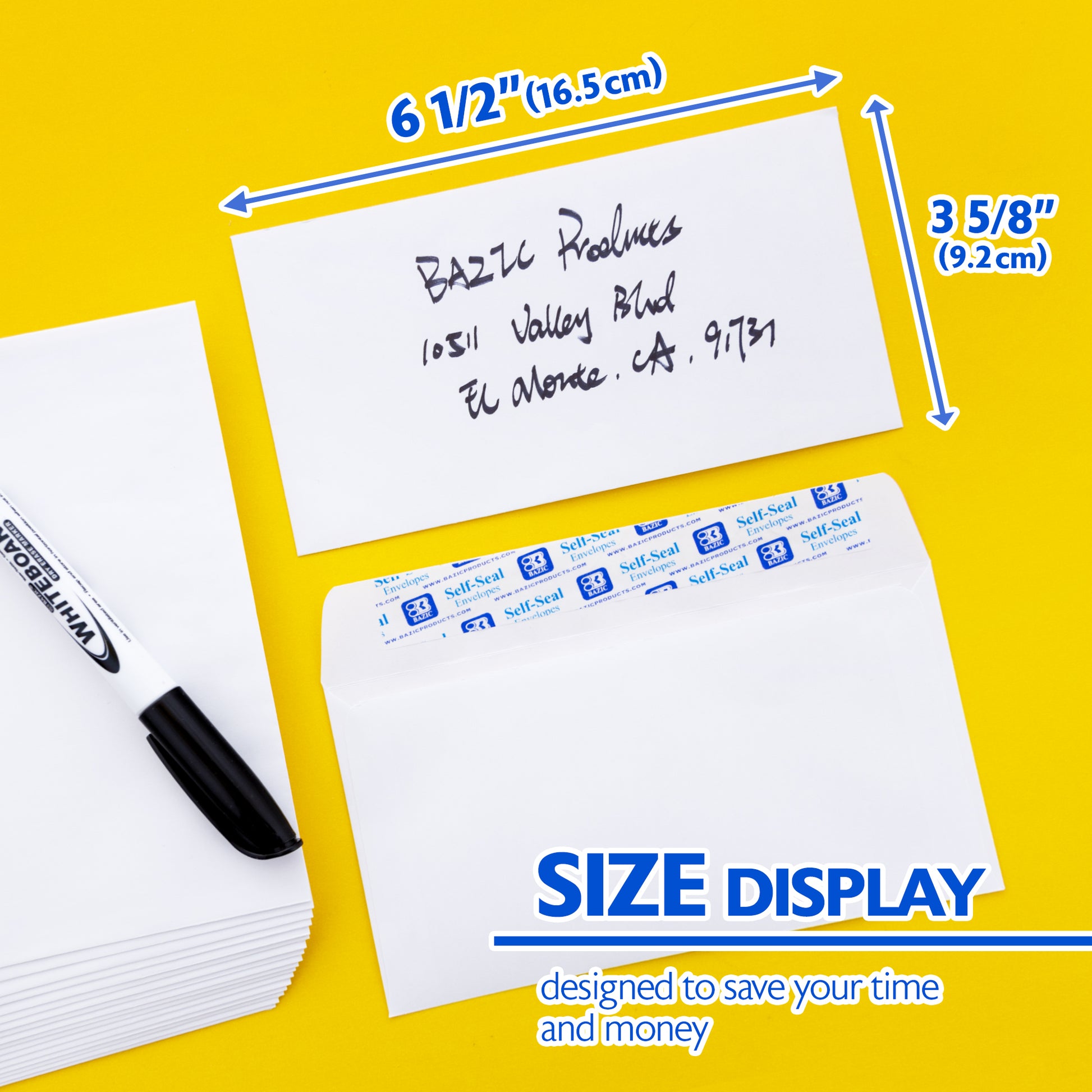 - #6-3/4 SELF-SEAL WHITE ENVELOPES. These 3 5/8" x 6 1/2" inch self-sealing envelopes are designed to save your time and money. Helps you fly through mailings in record time.