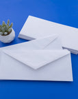 - #10 WHITE ENVELOPES. These 4 1/8" x 9 1/2" inch envelopes with gummed closure offer a crisp, clean look to help you maintain a professional appearance. Great for storing or shipping documents.