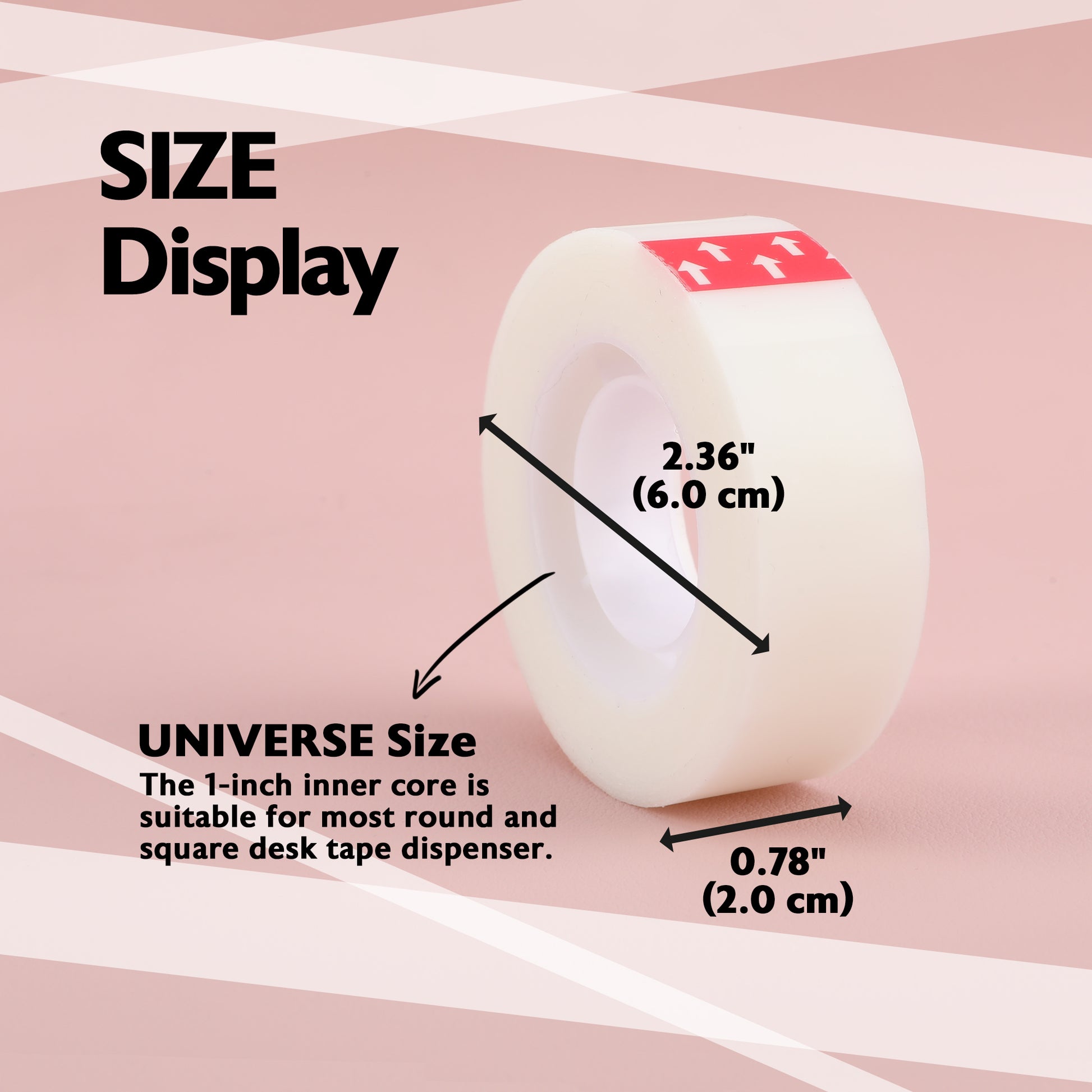 - UNIVERSESize. Each Tape width is 0.75 inch (18 mm). The 1-inch inner core is suitable for most round and square desk tape dispenser. BAZIC also offer refills tape in matte, clear, crystal color.