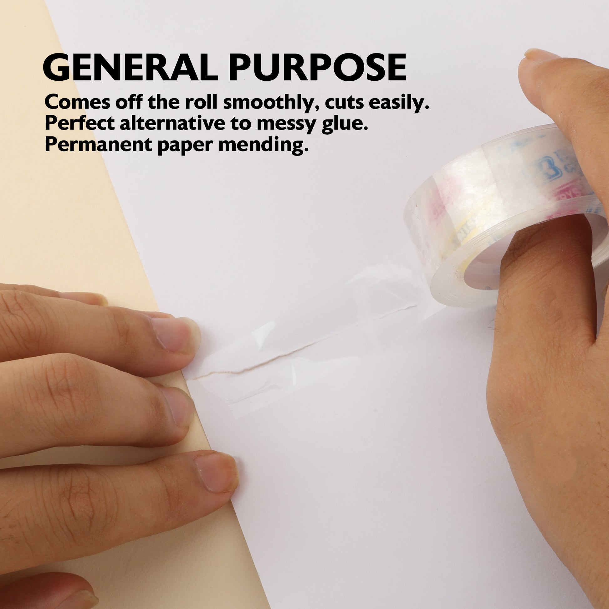 - GENERAL PURPOSE. Comes off the roll smoothly, cuts easily. Perfect alternative to messy glue. Permanent paper mending.