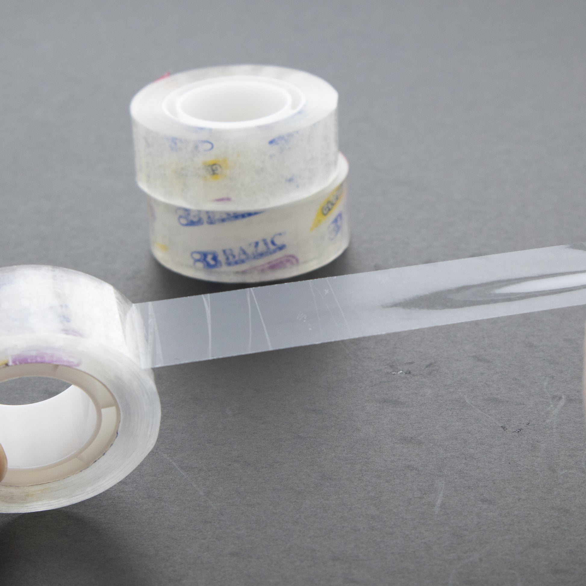 - UNIVERSAL Size. Each tape width is 0.75 inch (18 mm). The 1-inch inner core is suitable for most round and square desk tape dispenser. BAZIC also offer refills tape in matte, clear, crystal color.