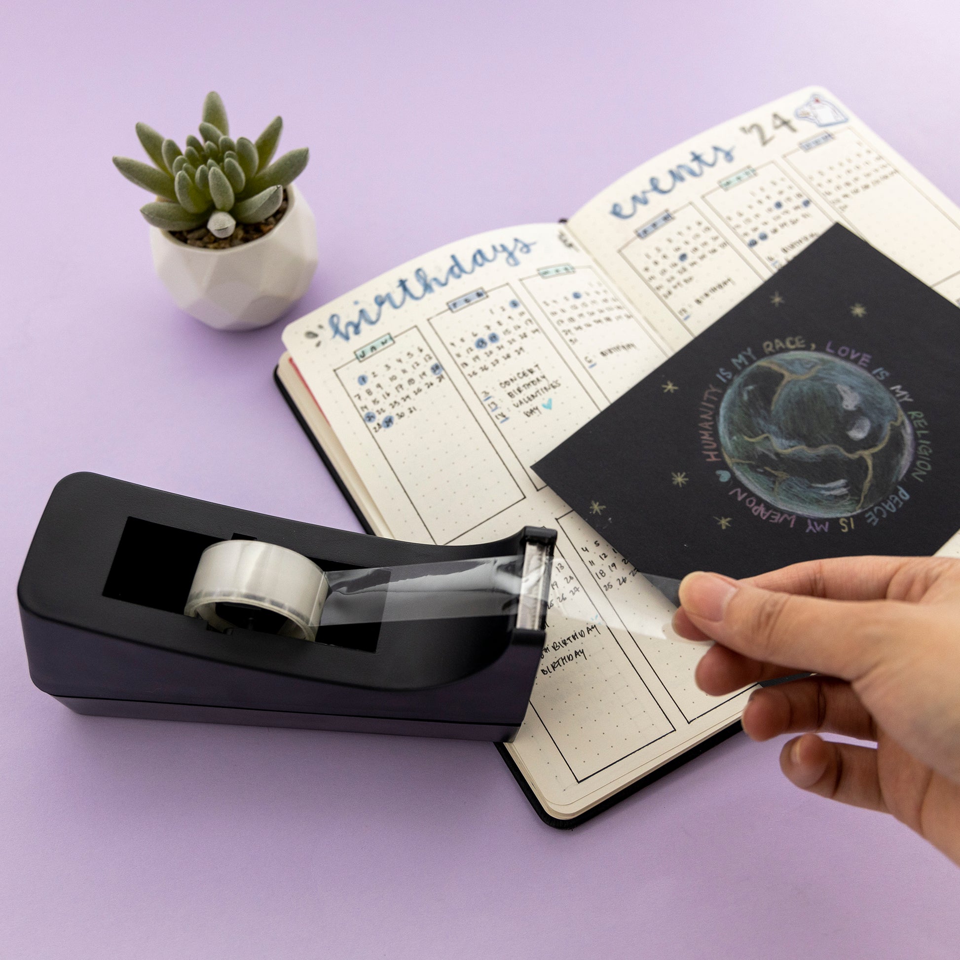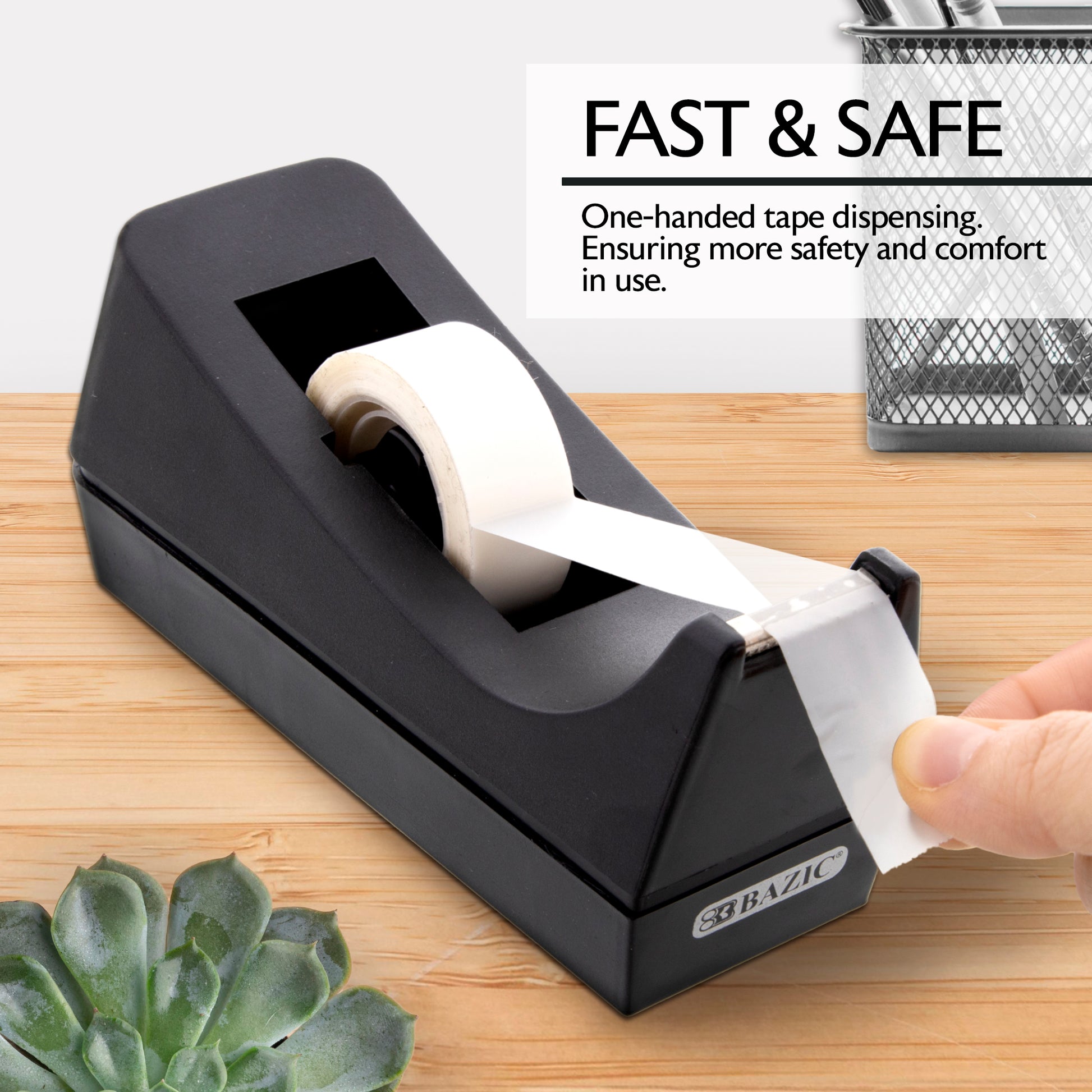 - STURDY. Durable tape dispenser made of impact-resistant plastic for long-lasting strength. Perfect for office, school, home, mail room, shipping department, and sample room