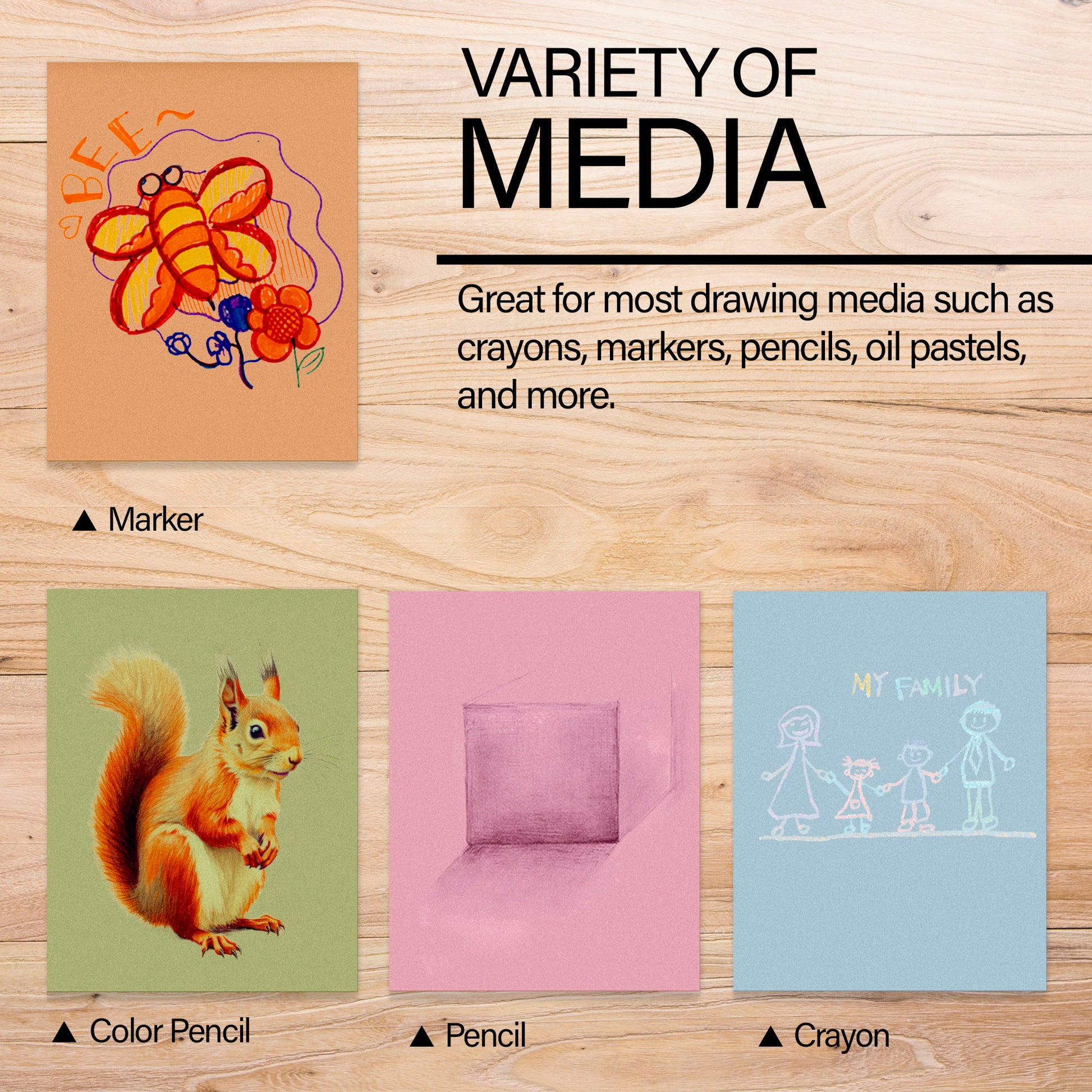 - VARIANT MEDIA. Papers accept most drawing media such as crayons, markers, pencils, oil pastels, and more. Available in bulk packs school and office supples to save costs.