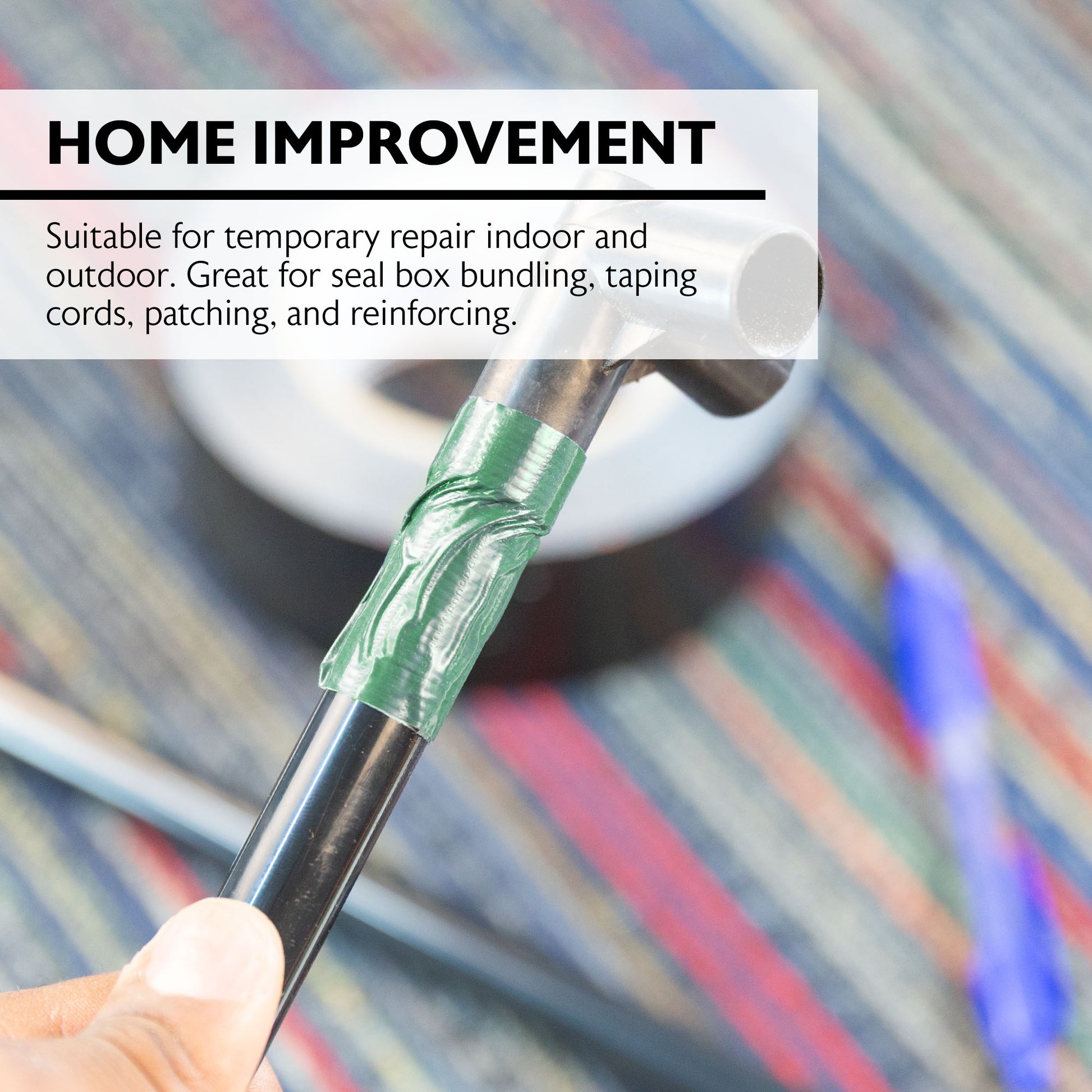 - HOME IMPROVEMENT. Suitable for temporary repair indoor and outdoor. Great for seal box bundling, taping cords, patching, and reinforcing. Stick to rough, uneven surfaces like wood, stone, and plaster.