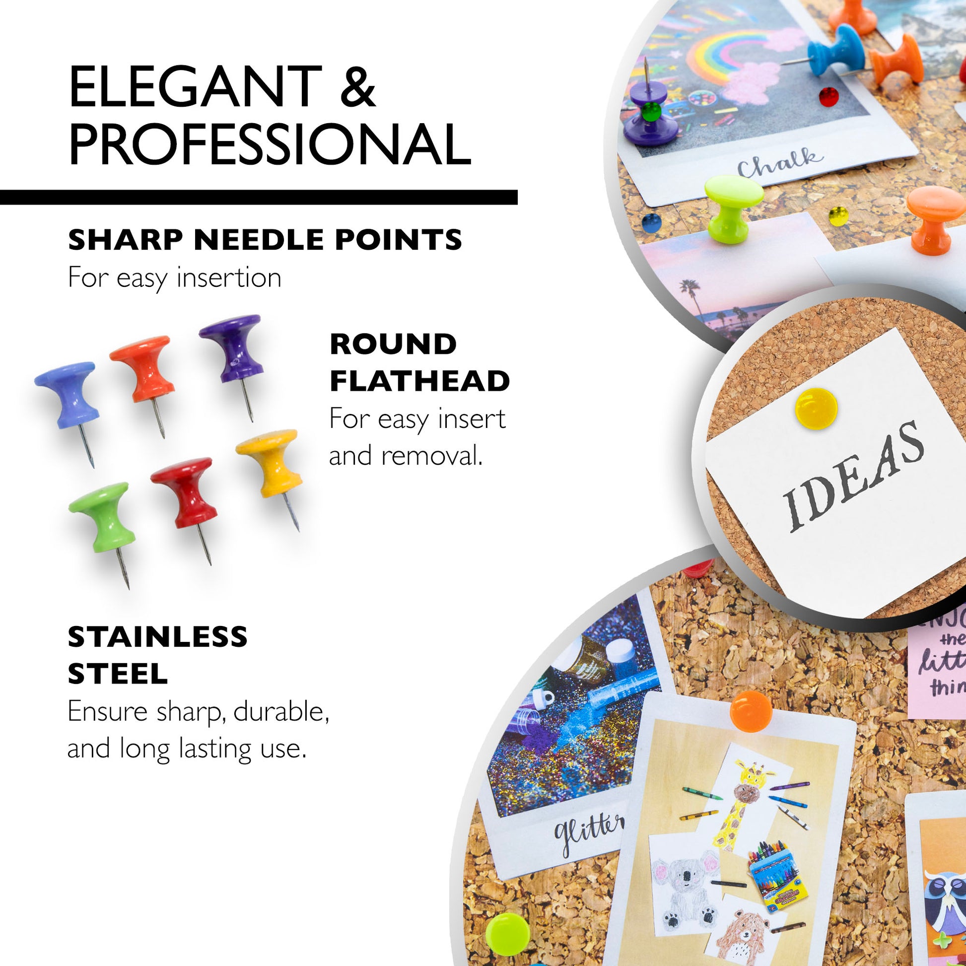 - PROFESSIONAL. Assorted Colors plastic heads adding fun to your work environment, yet plain design maintains professionalism. Marking locations on the map, decorate on wall, calendars.