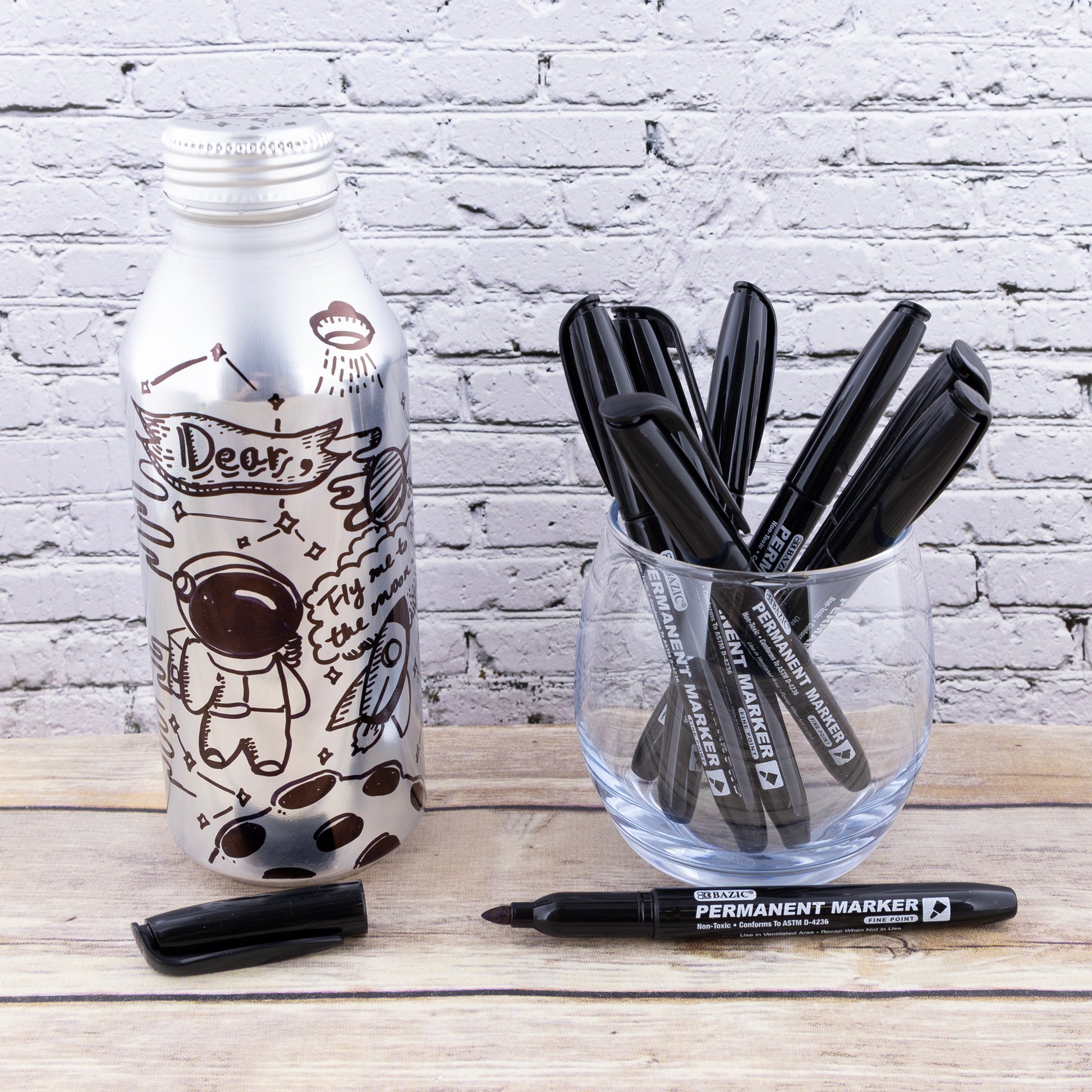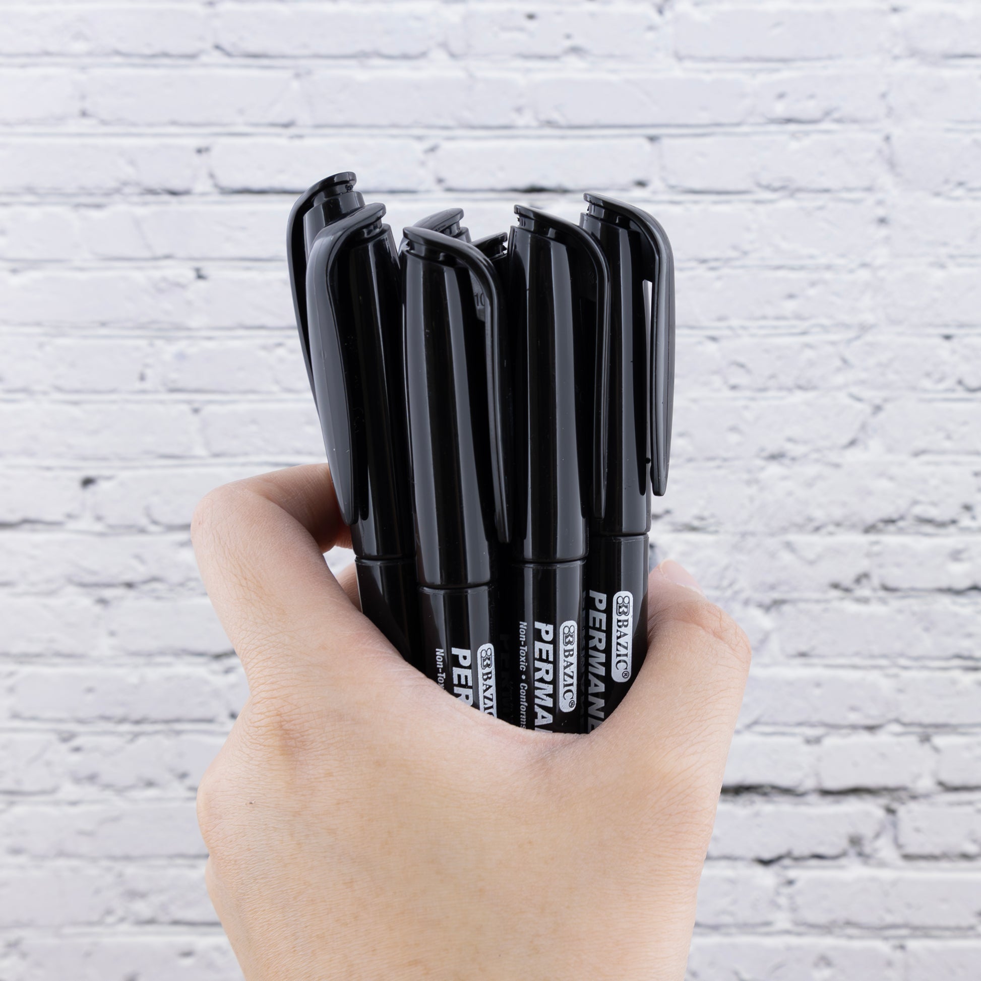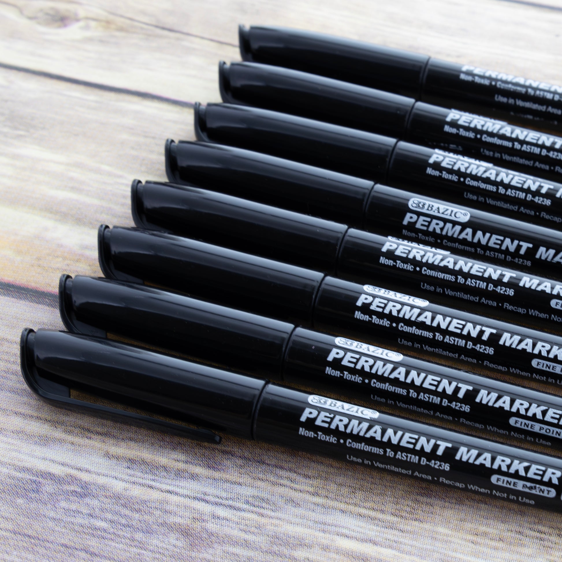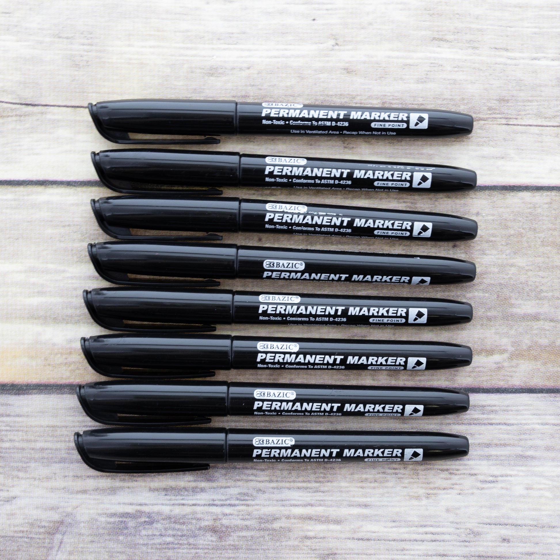 Black Fine Tip Permanent Markers w/ Pocket Clip (8/Pack)