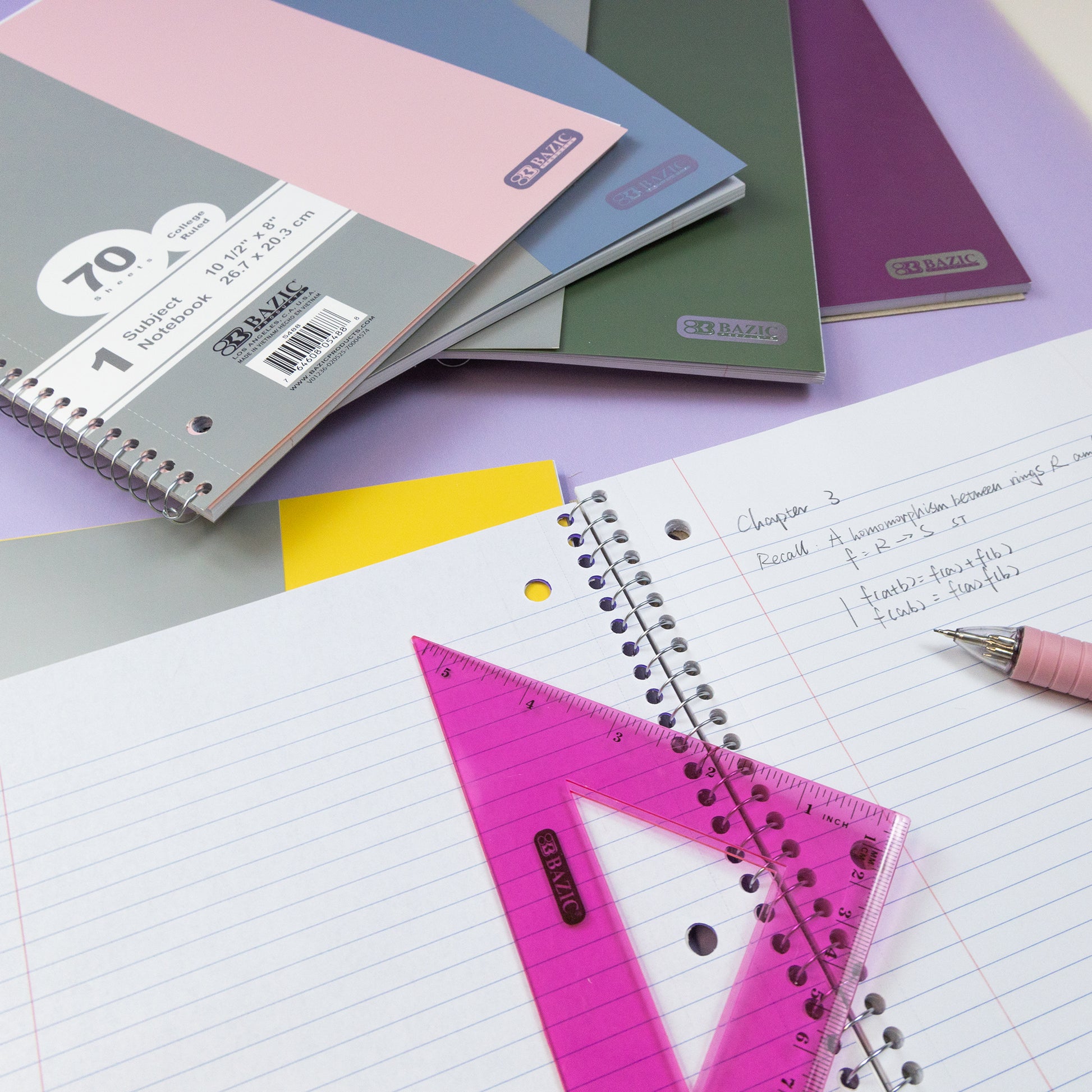 - ESSENTIAL NOTETAKING TOOL: 1-subject spiral notebooks with durable poly covers and 70 sheets of college-ruled paper, perfect for organized writing. Standard size: 10.5" x 8"