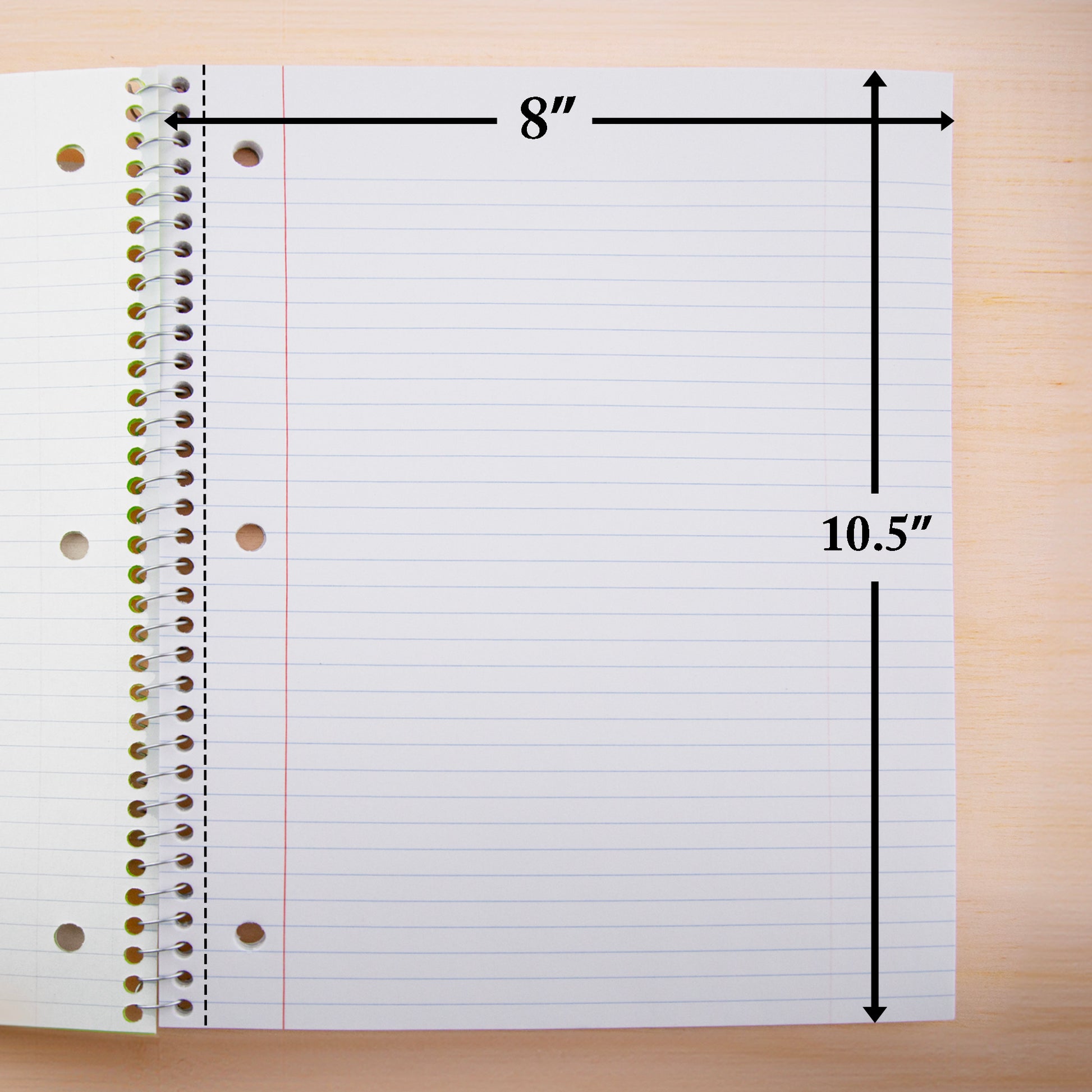 - SIMPLY NOTETAKING. 1-subject spiral notebooks come with 70 sheets of college-ruled paper. Each pack comes with 3 assorted colored covers, 3-hole punched to fit in binder. Size: 10.5" x 8"inches.