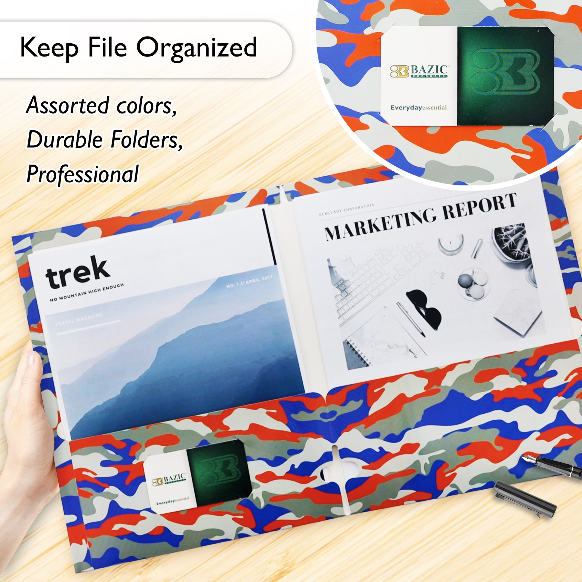 - FILE ORGANIZER. 2 pocket portfolios come in assorted colors and designs; An extremely useful product for organizing or arranging papers, files or other similar items.