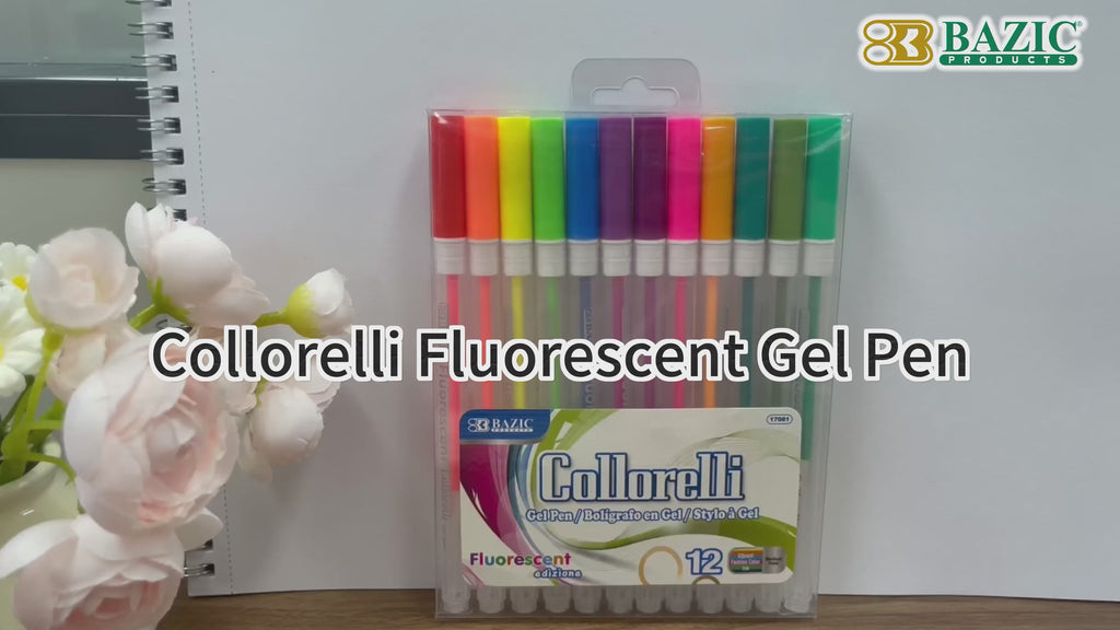 - COLLORELLI FLUORESCENT GEL PENS. Neon Gel Pens come in an assortment of 12 colors; Actual Colors May Vary! Fulfill all your coloring and writing needs! They're great for taking the dullness out of classroom notes.