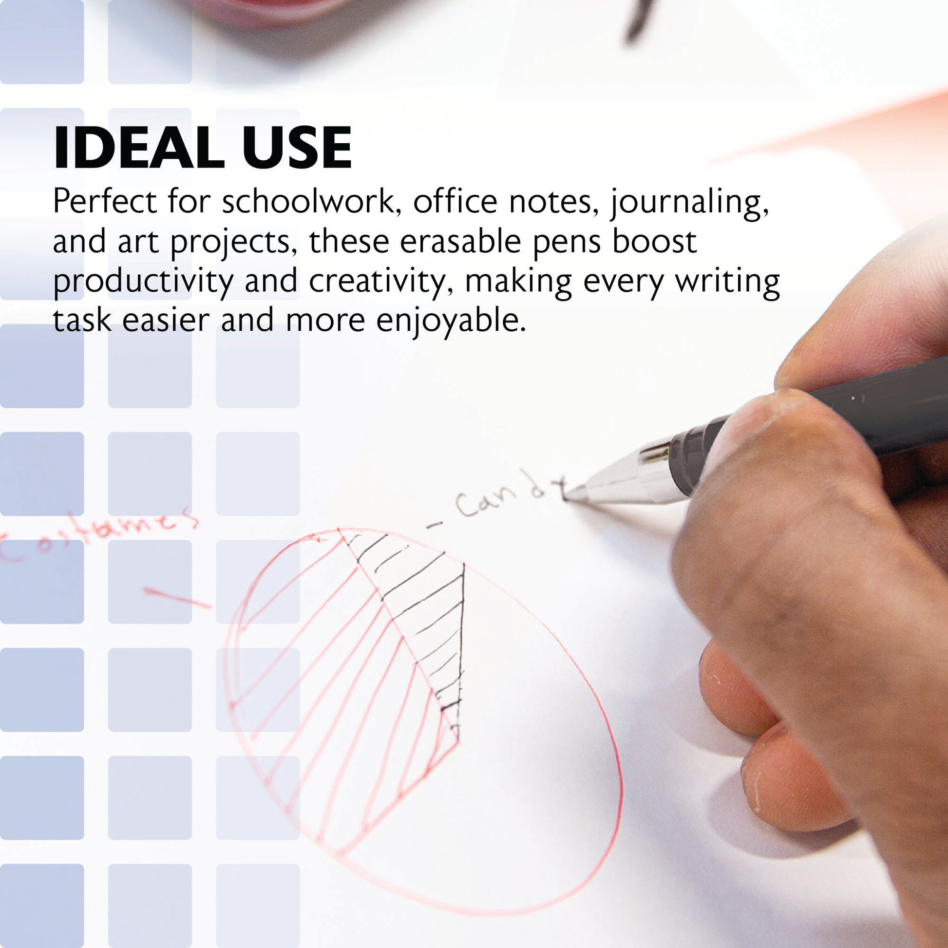 IDEAL USE. Perfect for schoolwork, office notes, journaling, and art projects, these erasable pens boost productivity and creativity, making every writing task easier and more enjoyable.