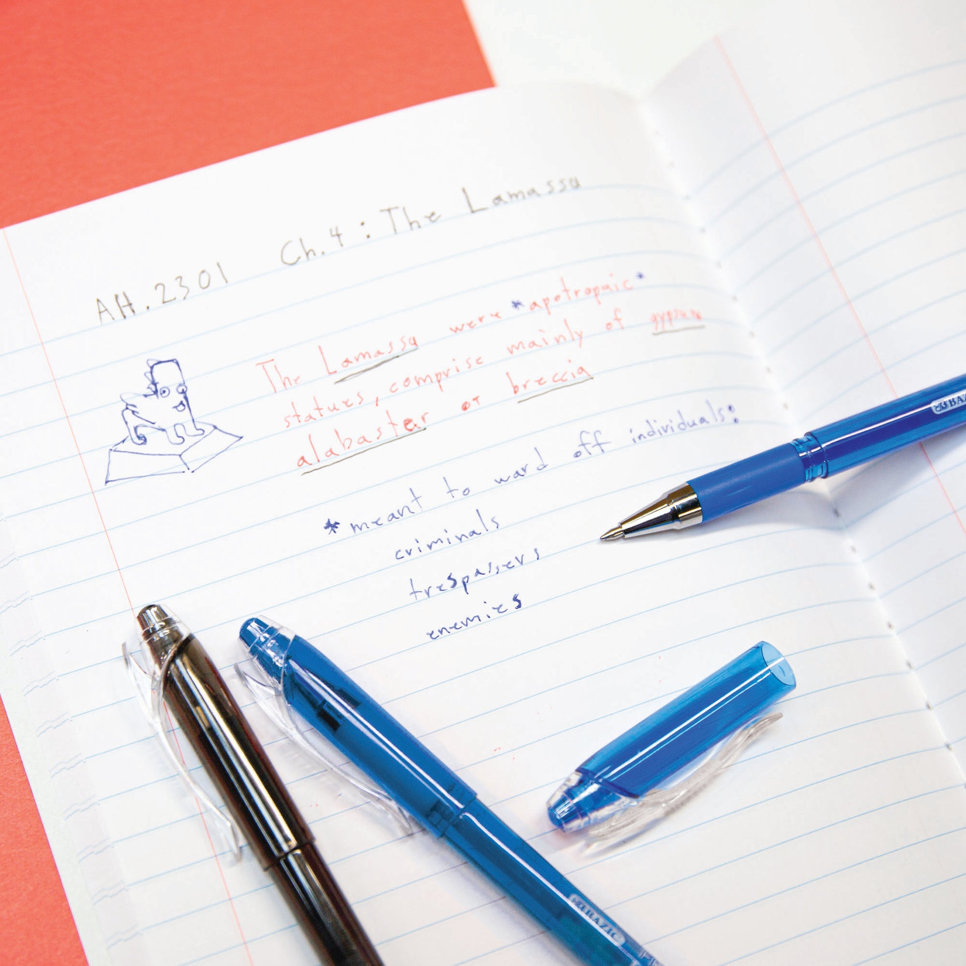 ERASABLE GEL INK. Enjoy erasable blue gel ink with a built-in eraser for instant corrections. Write smoothly and erase cleanly so notes stay flawless, while ink becomes permanent over time for lasting results.