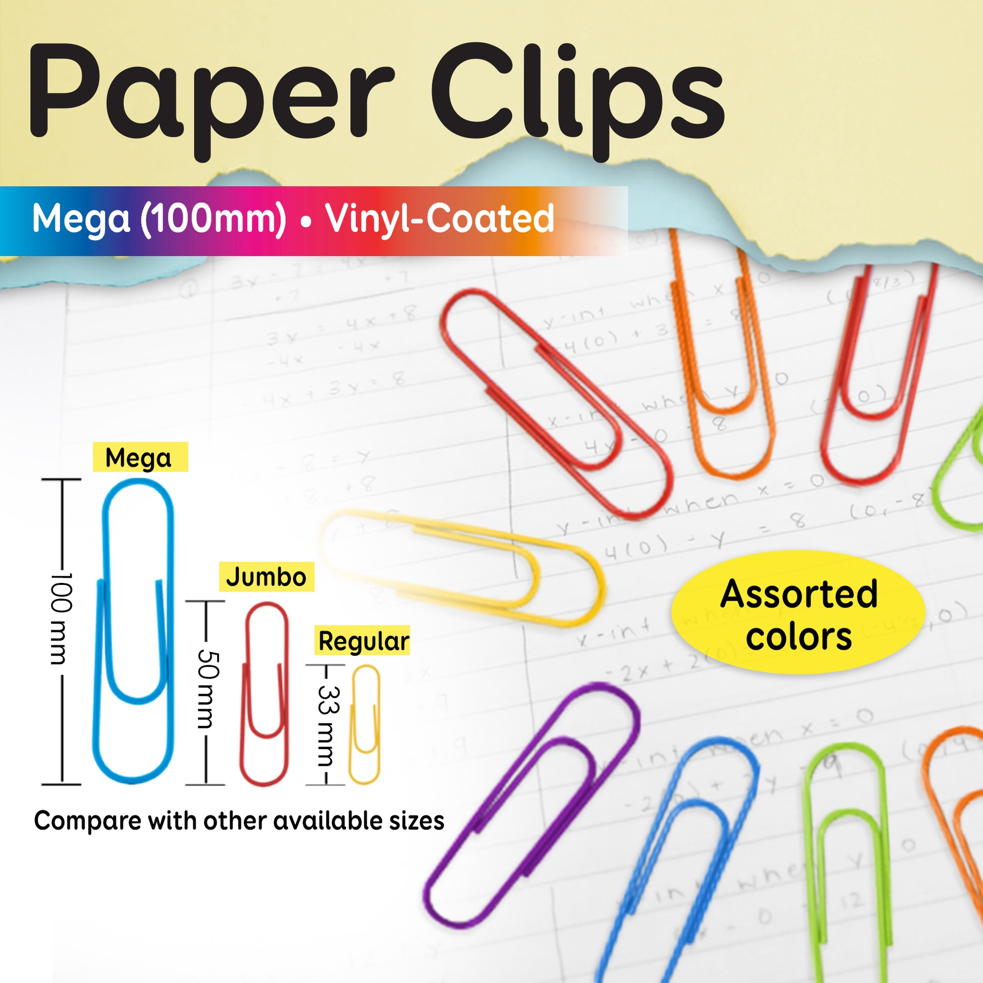 - SUPER JUMBO Sizes. 10 assorted color paperclips in size 4 inch long. The oversized paper holder can hold more and thicker papers, organizing big files or cards. Ideal for home, office, or school use.