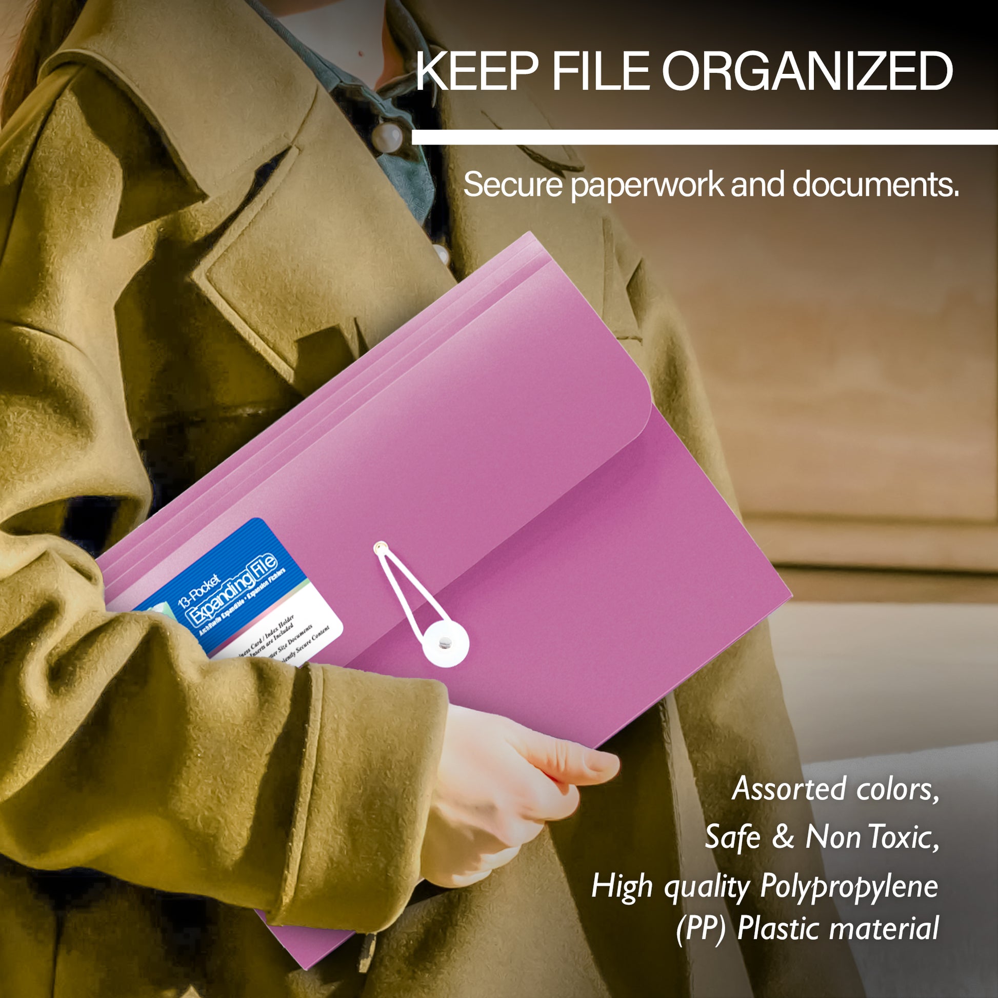 - EXPANDING DESIGN. Made with sturdy, non-toxic, and tear resistant poly material to securely hold documents; Large capacity multi-pocket folder with dividers expands to fit more; perfect companion for organizing at office and school