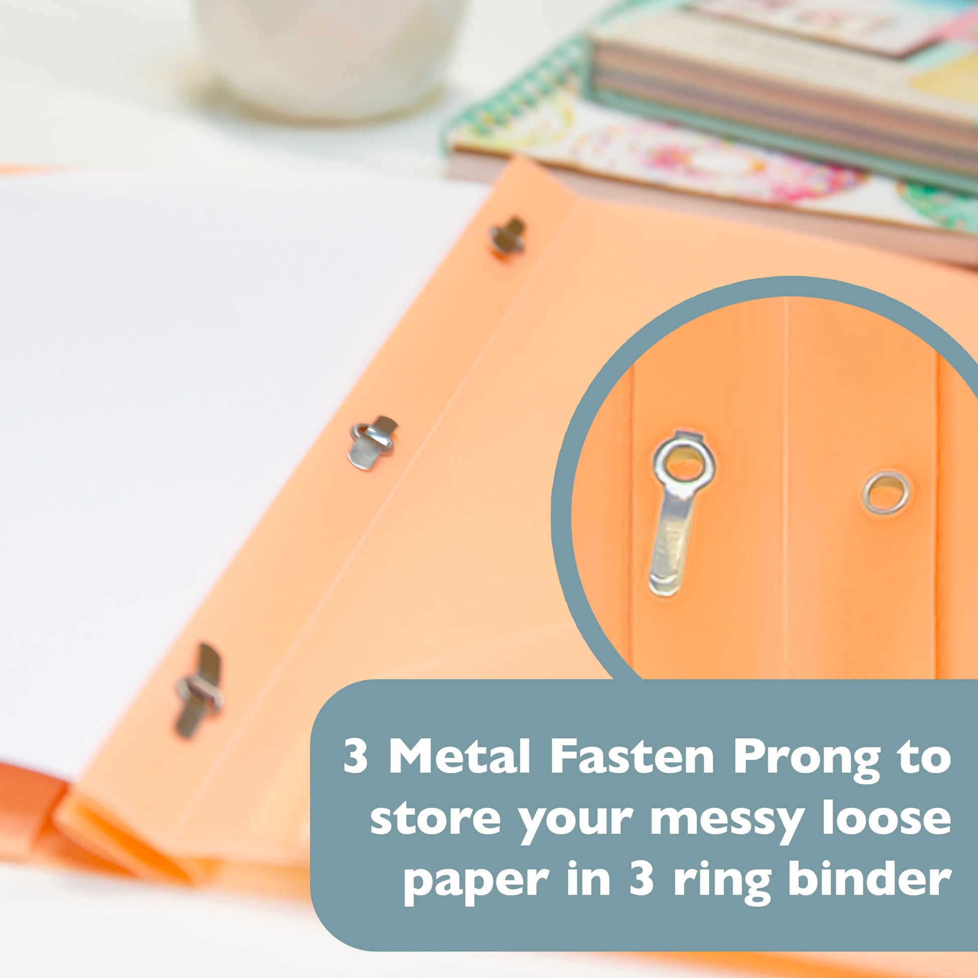- CHIC ORGANIZATION. 2 pocket portfolios with metal 3 prong fastener come in assorted soft pastel colors; Organize and arrange papers, files or other similar items- elevate your organization game