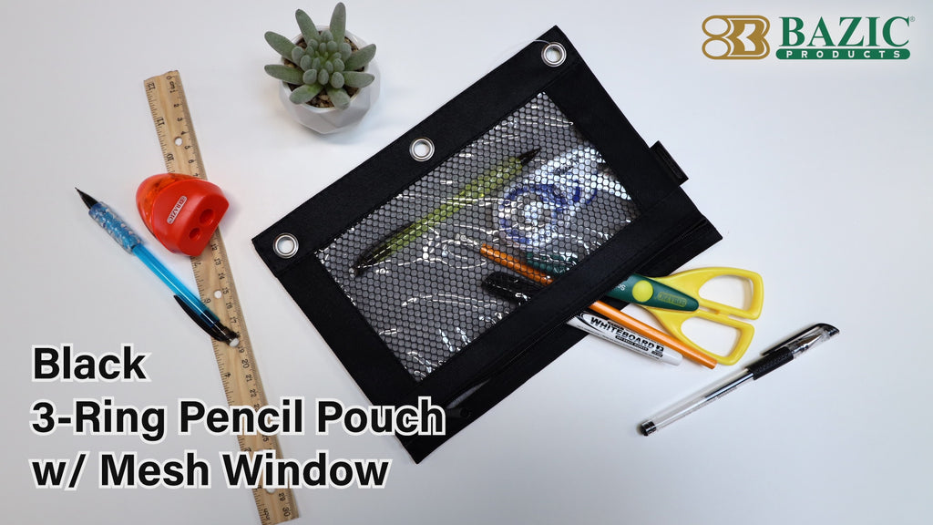 Pencil Pouch 3-Ring Black Color w/ Mesh Window