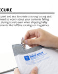- SECURE. Just peel and seal to create a strong lasting seal, no need to worry about your contents falling out during transit even when shipping hefty shipments like halfSize catalogs or magazines.