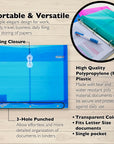 - DURABLE. Made with tear and water resistant poly material, documents will be secure and protected against daily use. Organize your important files, contracts, sales report, presentation, receipt, checks, assignments.