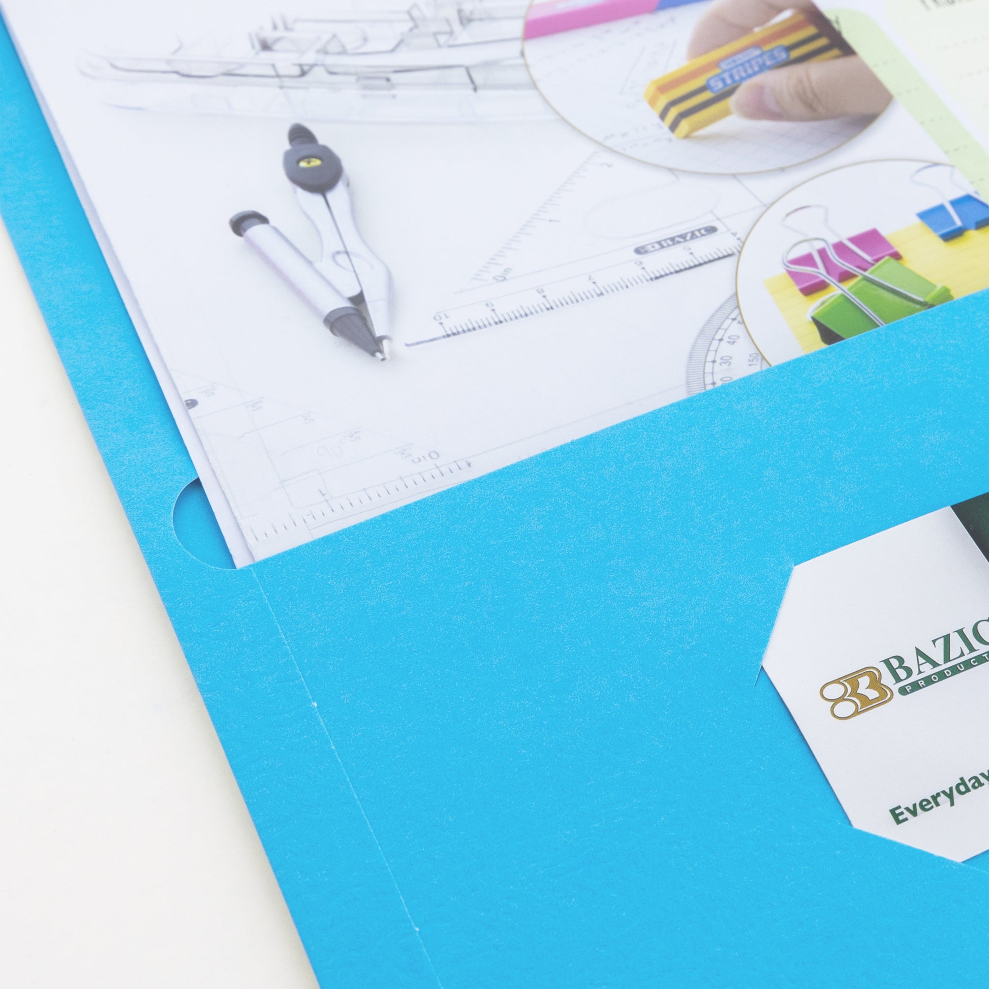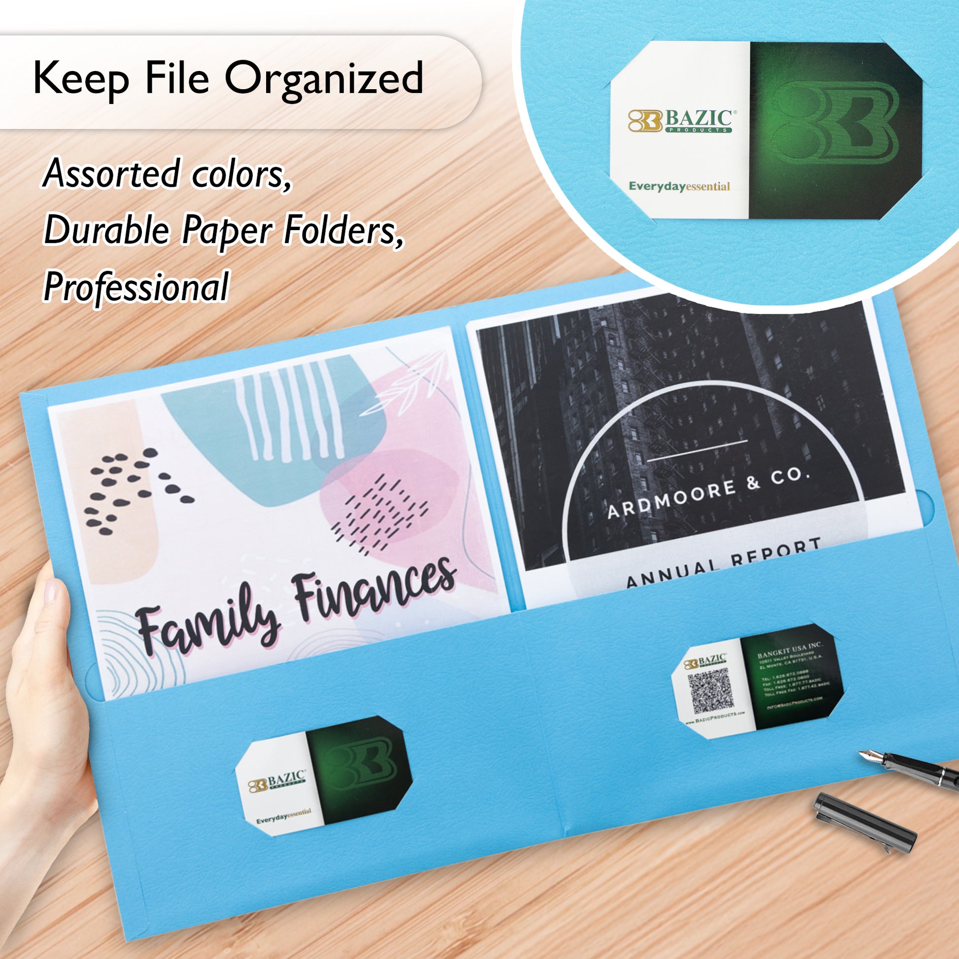 - FILE ORGANIZER. Premium Light Blue Color 2 pocket portfolios come with 25 folders per box. An extremely useful product for organizing or arranging papers, files or other similar items.