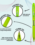 - COMFORT GRIP DESIGN: Soft cushion grip ensures comfort and control for long writing sessions, whether you're working, studying, or journaling reducing strain with every use.