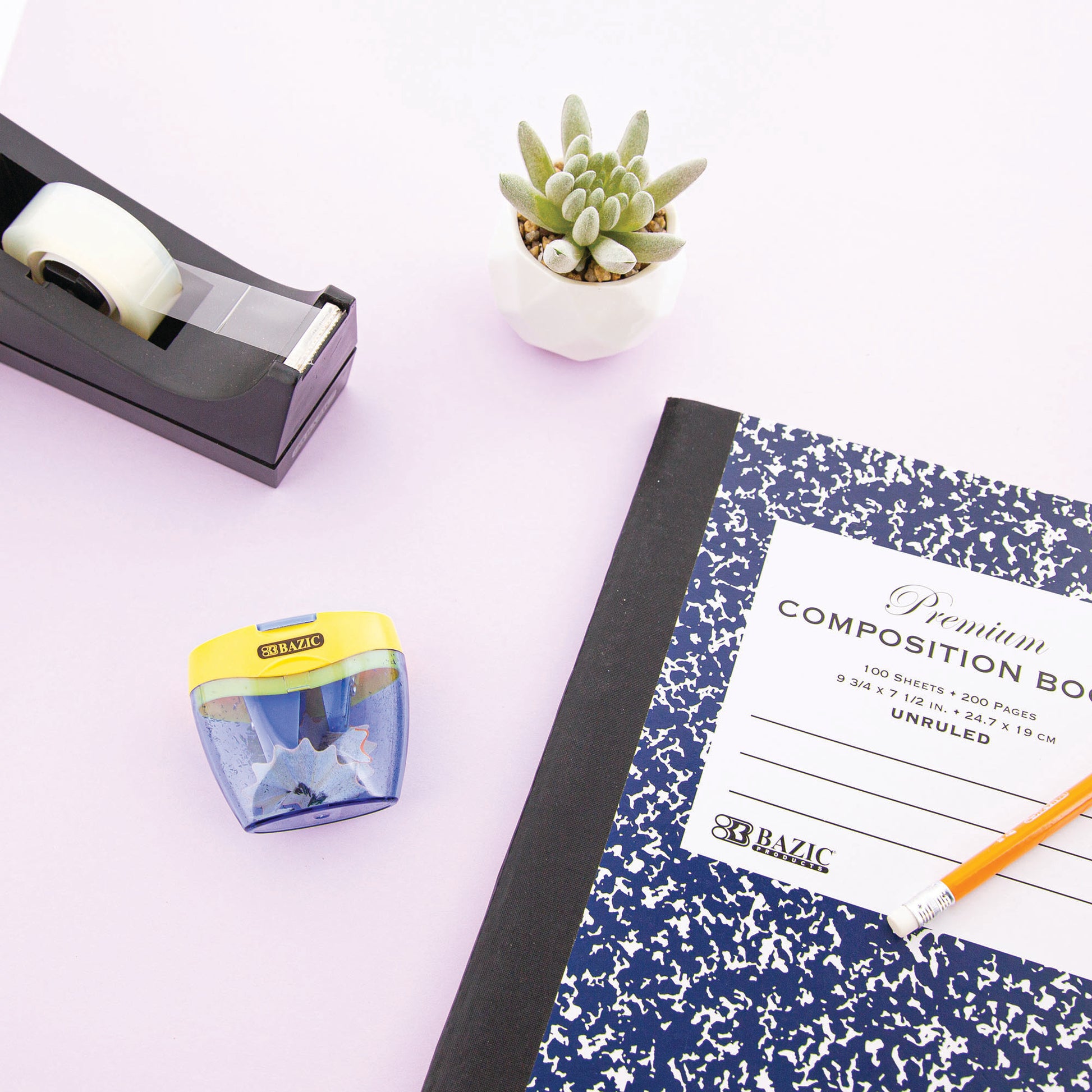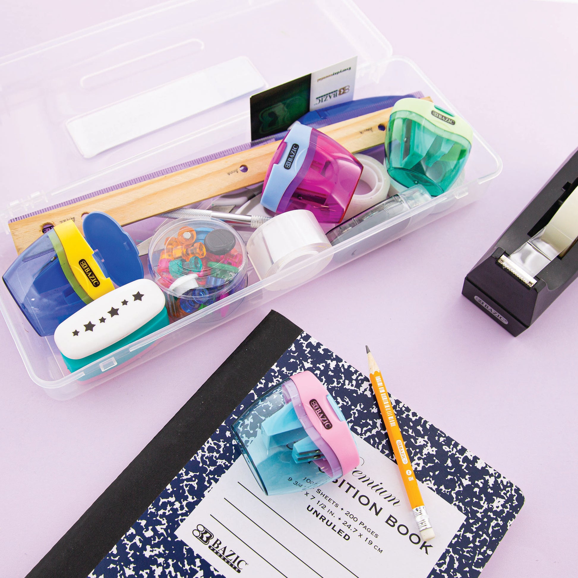 - COLORFUL DESK HERO. Fun assorted colors, durable build, and trusted BAZIC quality make this sharpener a cheerful, reliable addition to any supply kit or desktop.