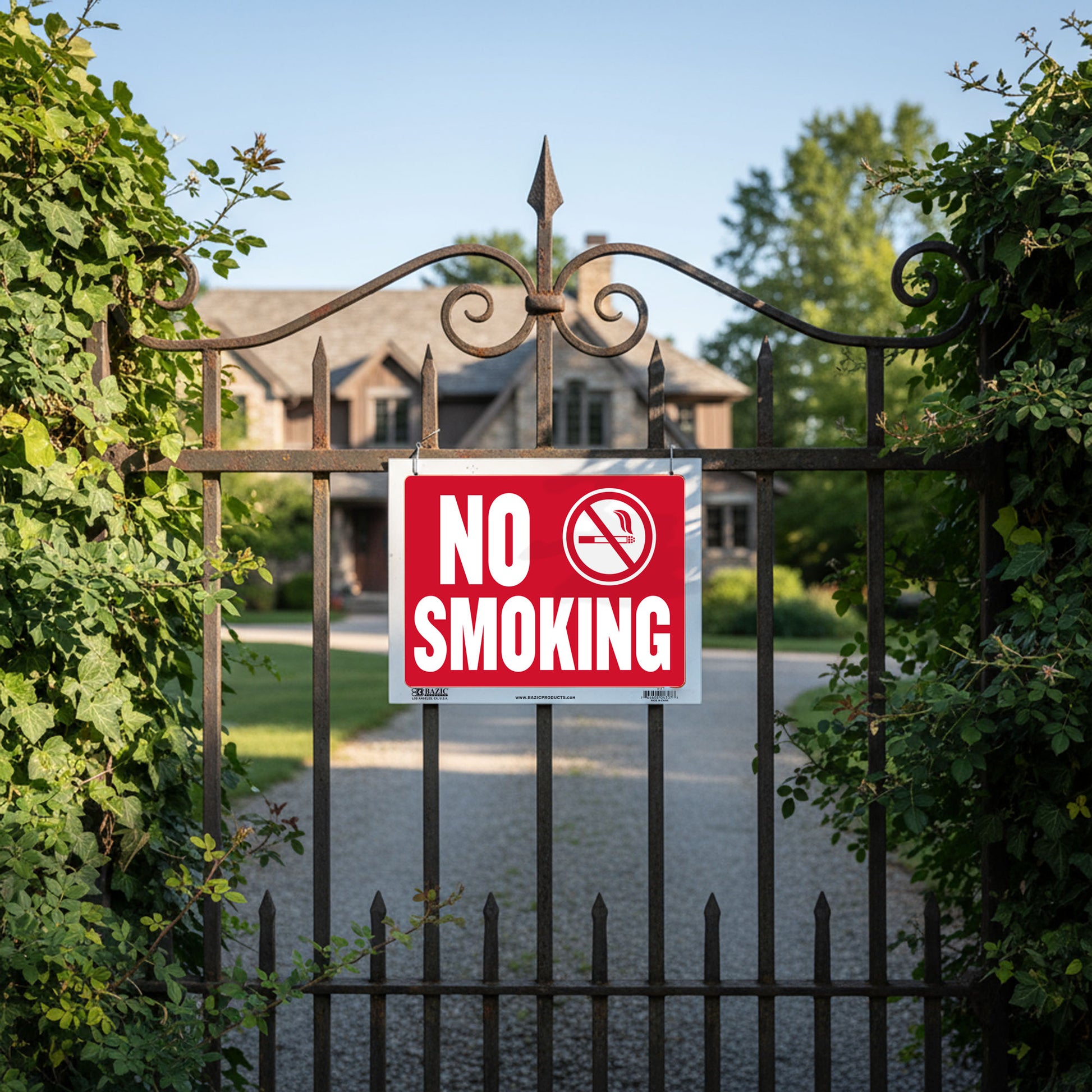 - 9 X 12 INCH MEDIUM BANNER. Red background with white text. The high contrast lettering ensures high visibility from a distance. Ideal for store, office, school, home, garage, car, retail, restaurant.