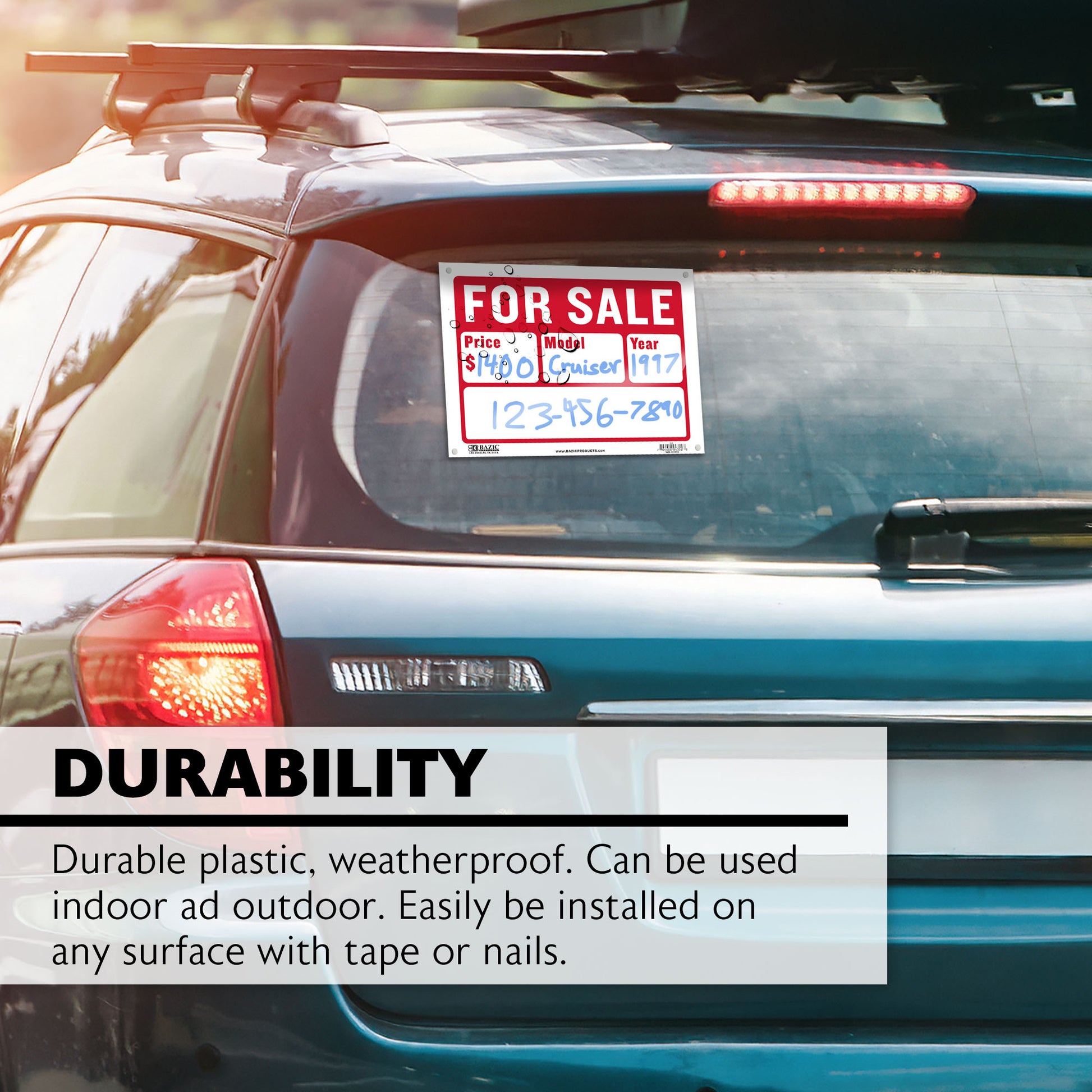 - DURABILITY. Durable plastic, weatherproof. Can be used indoor ad outdoor. Easily be installed on any surface with tape or nails. More than 30 different signage to choose and display.