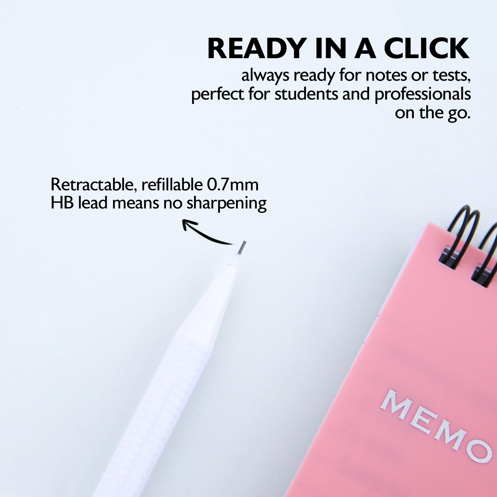 READY IN A CLICK. Retractable, refillable 0.7mm HB lead means no sharpening, always ready for notes or tests, perfect for students and professionals on the go.