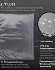 - KEEP DESK NEAT. Made of PVC-free polypropylene. Waterproof plastic page protector preserves papers from wear and tear. Provides for you a clean and professional look.