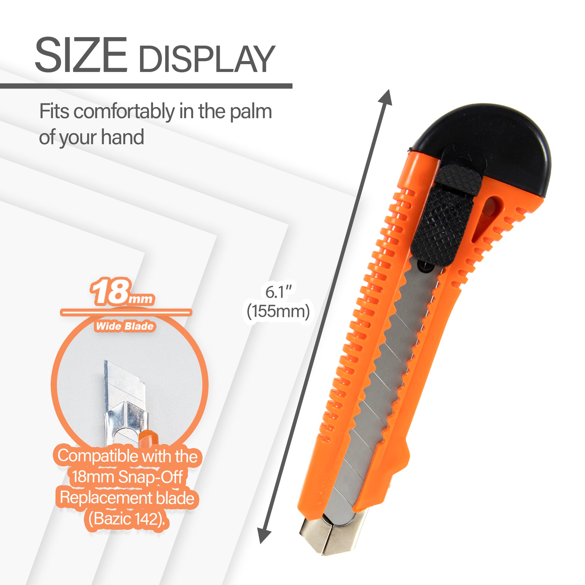 - LOCKING MECHANISM. Furnished with one 18 mm knife blade. Prevent blade slipping with the safety lock tab. Always keep your blade fresh and sharp by snapping off the blade for a new sharp cutting tip