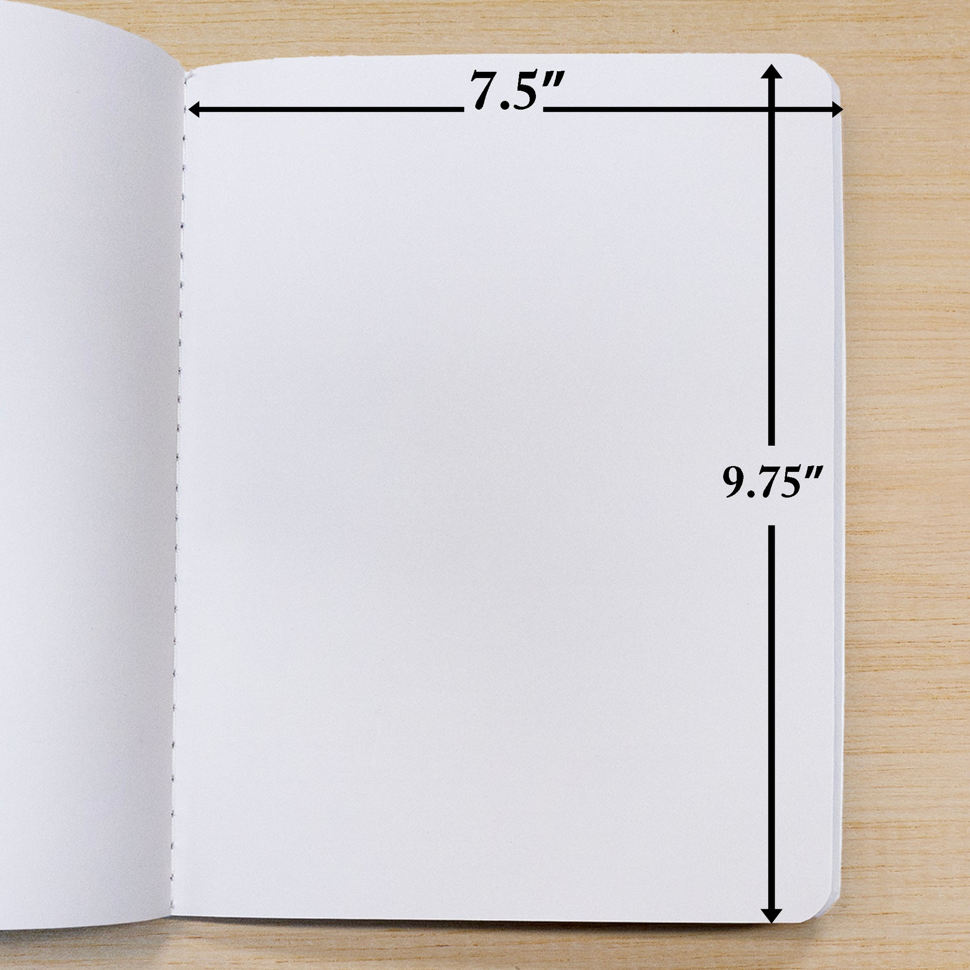 - Unruled composition book - 100 sheets (200 pages) in 9.75" x 7.5" for diagrams, sketches, and freeform notes