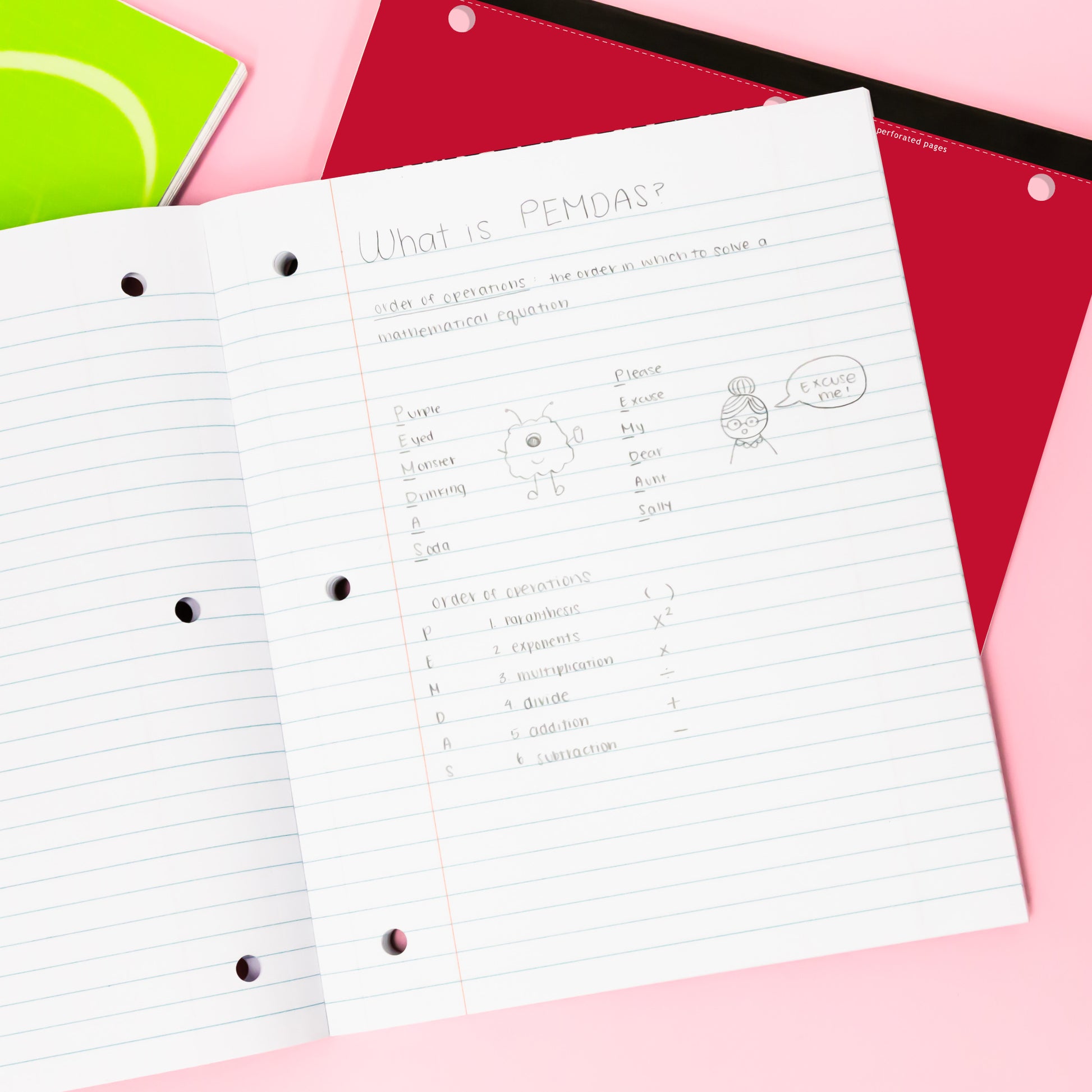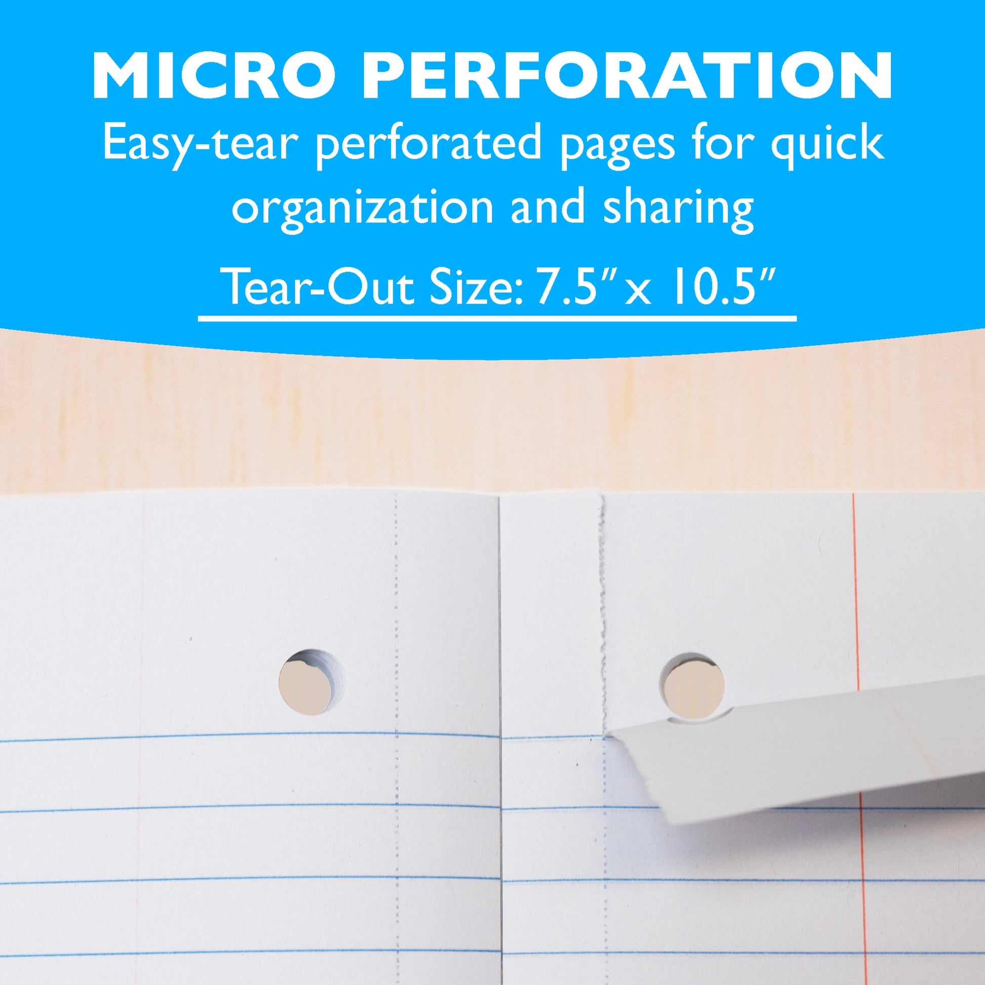 - DESIGN. Binding is smooth so it wont catch on your clothing or backpack, notebooks are 3-hole punched to store in a binder. Sheets are perforated pages for easy tear out with clean edges.